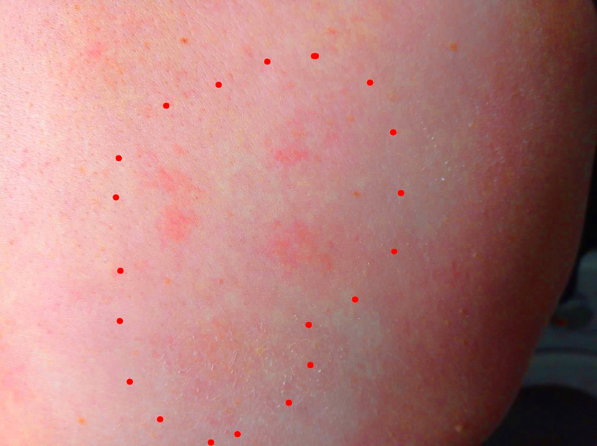 J’ai réussi pour les photos, je ne sais pas si l’on voit grand chose, en tout cas c’est sec, cela brûle et parfois cela me démange…