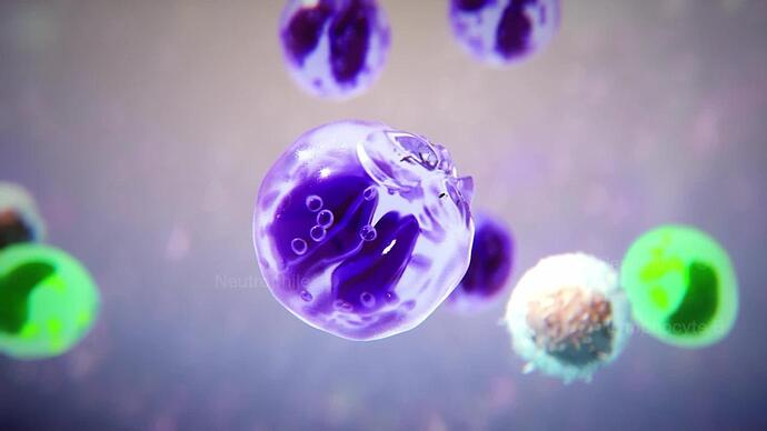 polynucléaires basophiles : leur taux peut être augmenté en cas de réaction allergique, infectieuse…
