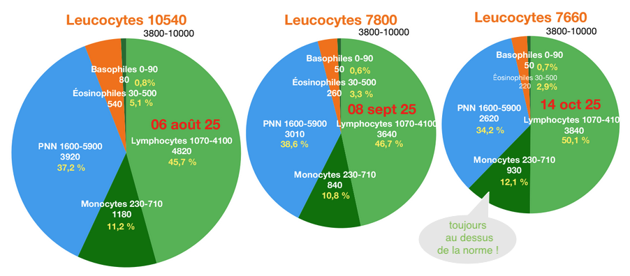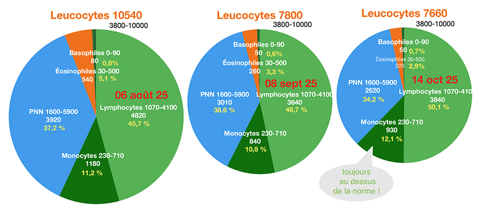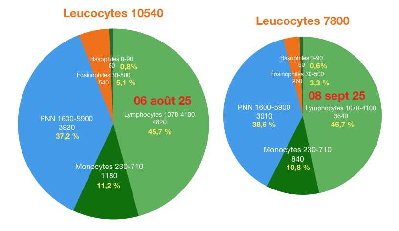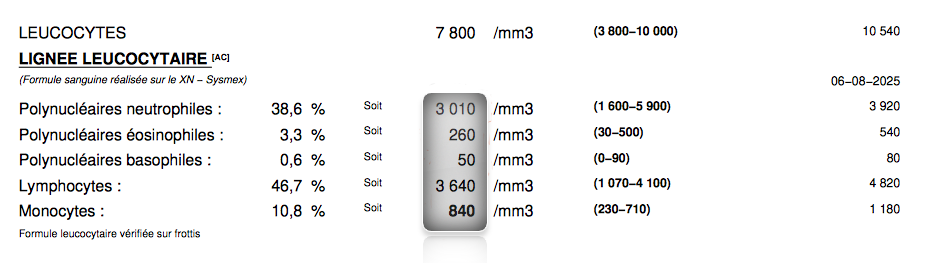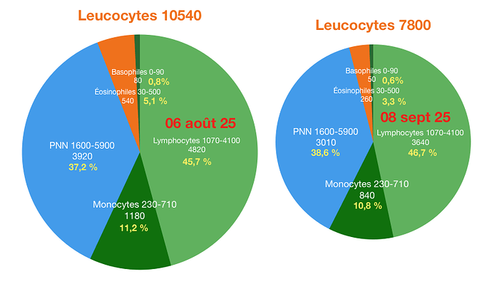 polynucléaires éosinophiles : ils augmentent en cas d’allergie, ou d’infection parasitaires (ex. : oxyurose…) ;