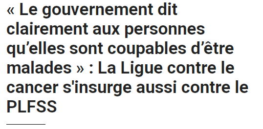 La Ligue contre le cancer dénonce un projet de budget de la Sécurité sociale (PLFSS) porteur d’« encore plus de restes à charge » pour les patients, et accuse le gouvernement de faire porter aux malades la responsabilité de leur état.
