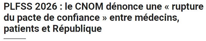 Dans un communiqué au ton inhabituellement virulent, le Conseil national de l’Ordre des médecins alerte sur les dangers du projet de loi de financement de la Sécurité sociale pour 2026.