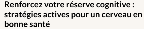 Use it or lose it – s’en servir ou le perdre : notre cerveau est un capital précieux. Pour le faire fructifier tout au long de la vie, il est essentiel de développer des connexions et des réseaux par des apprentissages et des découvertes. Une bonne hygiène de vie et l’exercice physique jouent également un rôle crucial dans la protection de notre cerveau. En adoptant ces stratégies, nous pouvons renforcer notre capacité à faire face au vieillissement et à se défendre contre les maladies neurodégénératives.