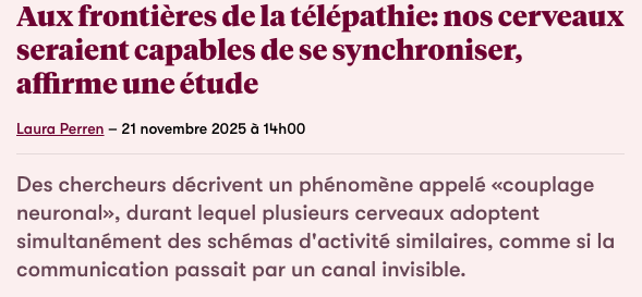 J’ai eu un chat qui était très fort à ce jeu-là : il savait exactement quand mes réunions (j’étais principal de collège) prenaient fin et avait pour habitude de se faire câliner par les participants, toujours étonnés par sa ponctualité. Il savait exactement quand j’allais arriver d’une réunion extérieure ou lorsque j’arrivais d’Angers alors que je ne rentrais pas tous les soirs : 10 minutes avant mon arrivée, il demandait à sortir et s’installait sur le muret ou sur le tas de bois pour m’accueillir. Pour les humains, je suis persuadé en effet que des connexions existent, quels que soient les mécanismes en jeu.