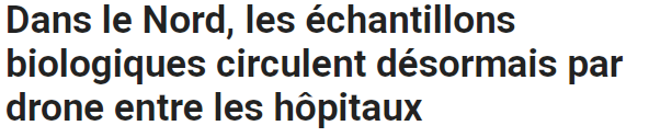 Les centres hospitaliers de Valenciennes et de Maubeuge (Nord) ont lancé, le 17 novembre, la première liaison entièrement hospitalière par drone en France. Opérée avec une start-up rouennaise, elle permet désormais le transport régulier d’échantillons biologiques entre les deux sites.