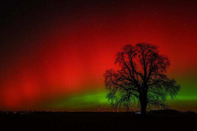 Des aurores boréales brillent sur le Bade-Wurtemberg, en Allemagne, le 19 janvier 2026. VALENTIN GENSCH / AP