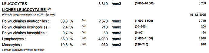 Je ne comprends pas au juste ce que signifie “après traitement” ? Vos lymphocytes sont un chouia au dessus de la norme. Du coup vous ne prenez plus de traitement, même s’ils sont un peu au dessus ?