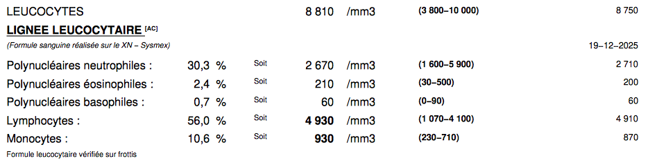 Mes lymphocytes ne rentrent pas totalement dans les clous non plus. Mais je suis toujours sous traitement.