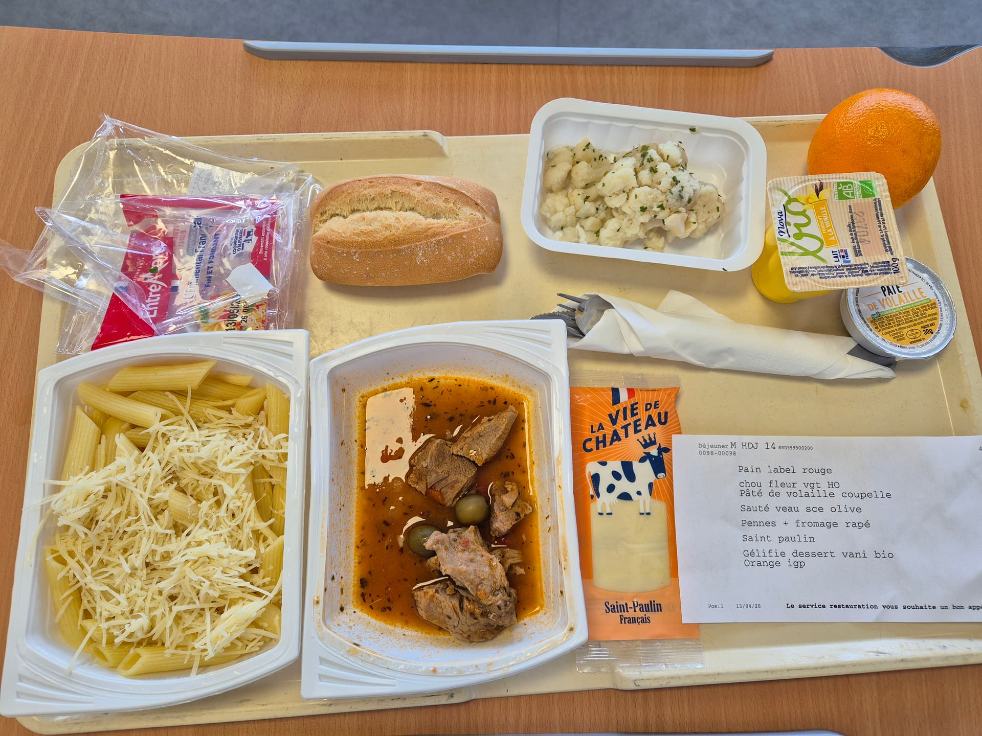Bon appétit, surtout pour ce Saint Paulin sous cellophane … mais je n’avais pas droit aux fromages au lait cru comme le Reblochon de chez nous (la Haute-Savoie).
