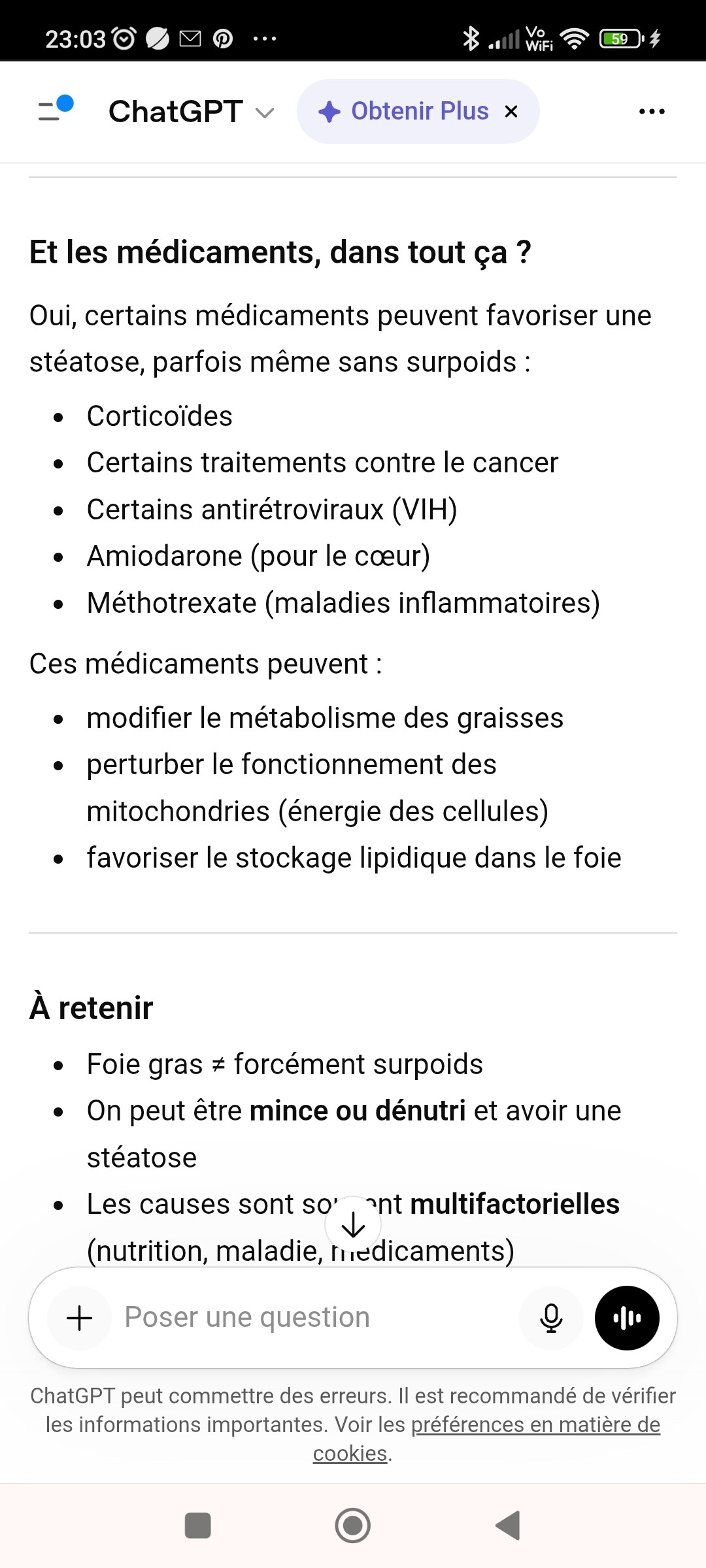 Je suppose que vous avez interrogé chatgpt comme je viens de le faire, pour savoir s’il pouvait y avait un lien entre une stéatose hépatique et certains médicaments…