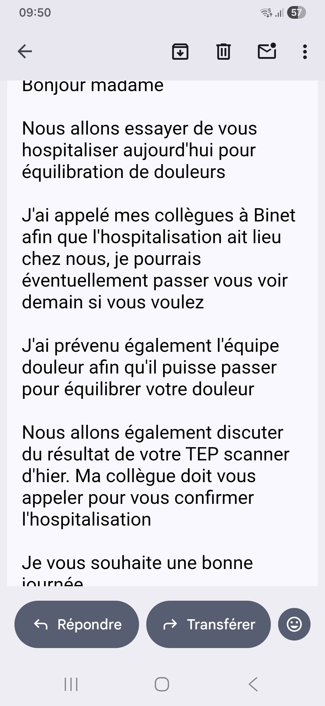 Jai demandé à mon hématologue par mail une hospitalisation mais pas de réponse…